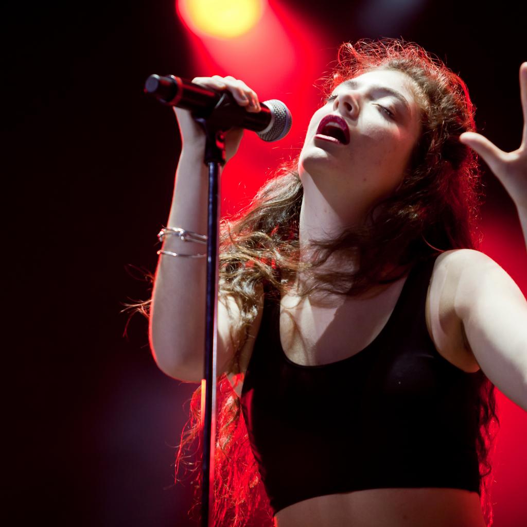 Обои Лана Дель Рей у микрофона