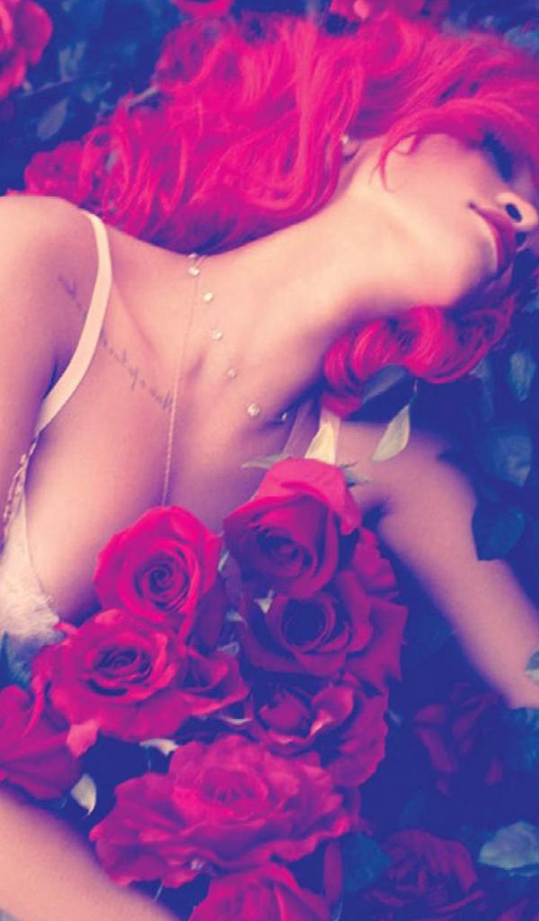 Обои Певица Рианна в розах