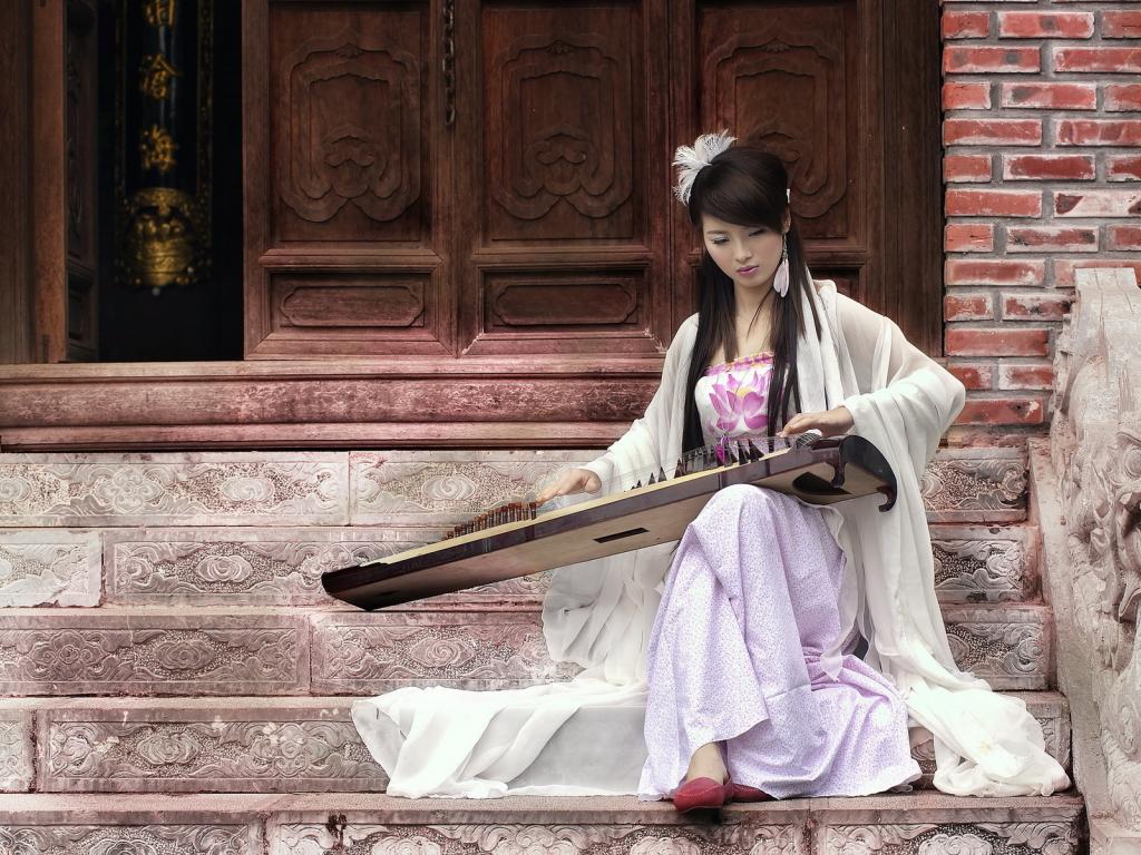 Обои Девушка с музыкальным инструментом
