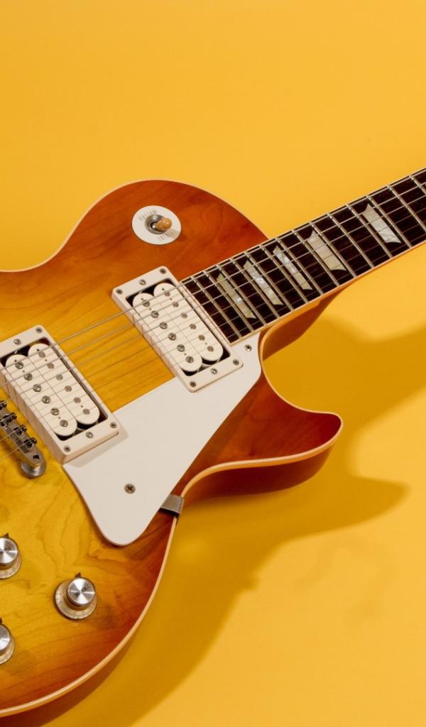 Обои Гитара с тенью на жёлтом фоне
