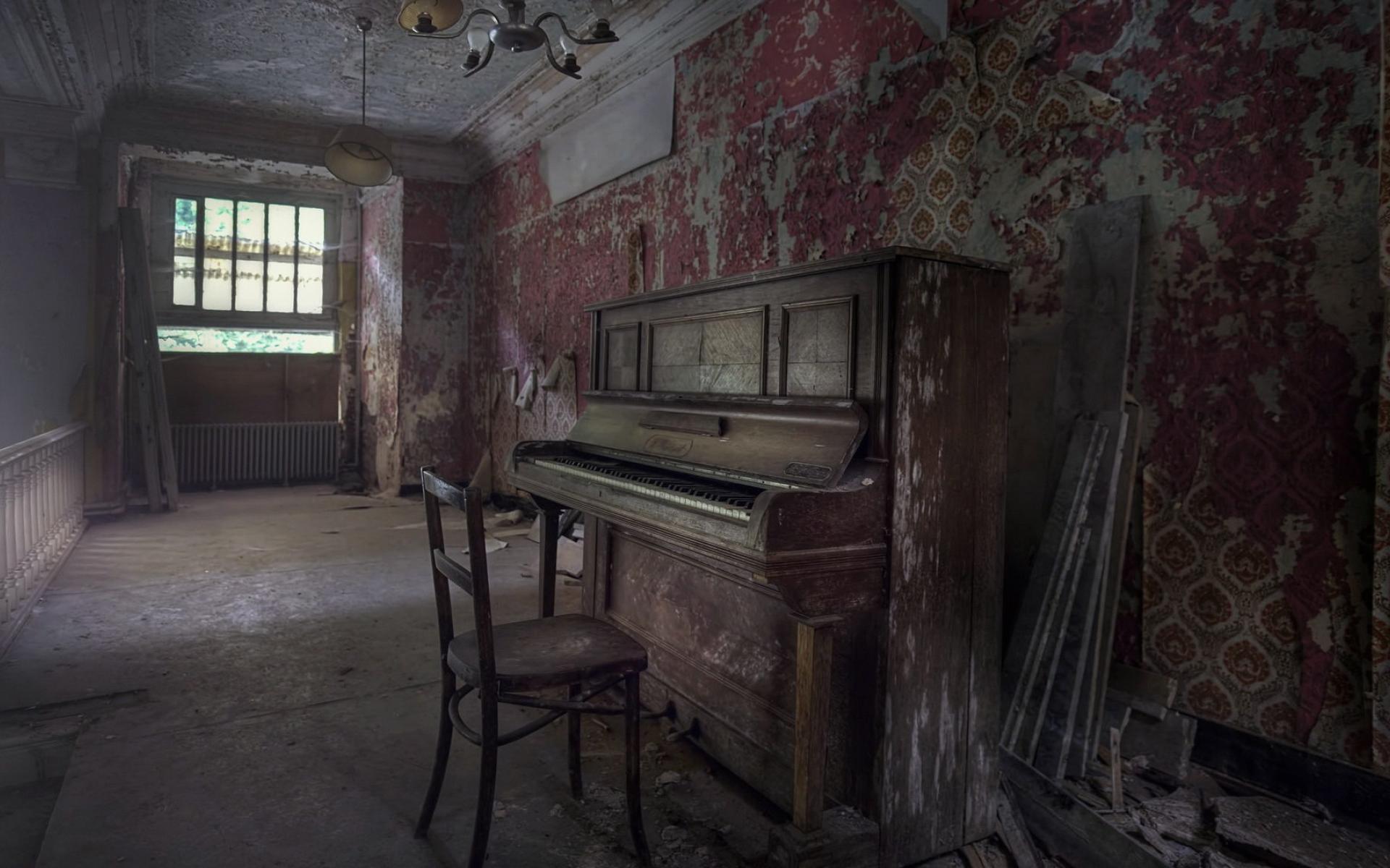 Обои Старое фортепиано в старой комнате