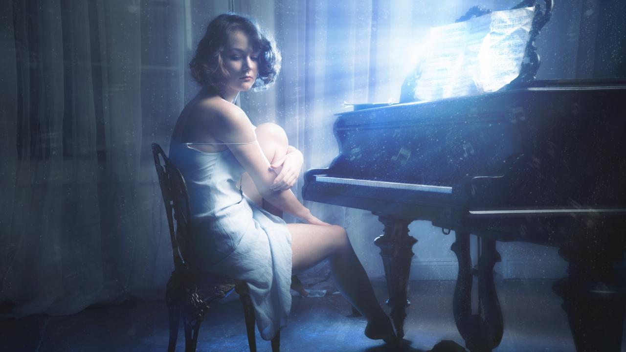 Обои Девушка за роялем ночъю
