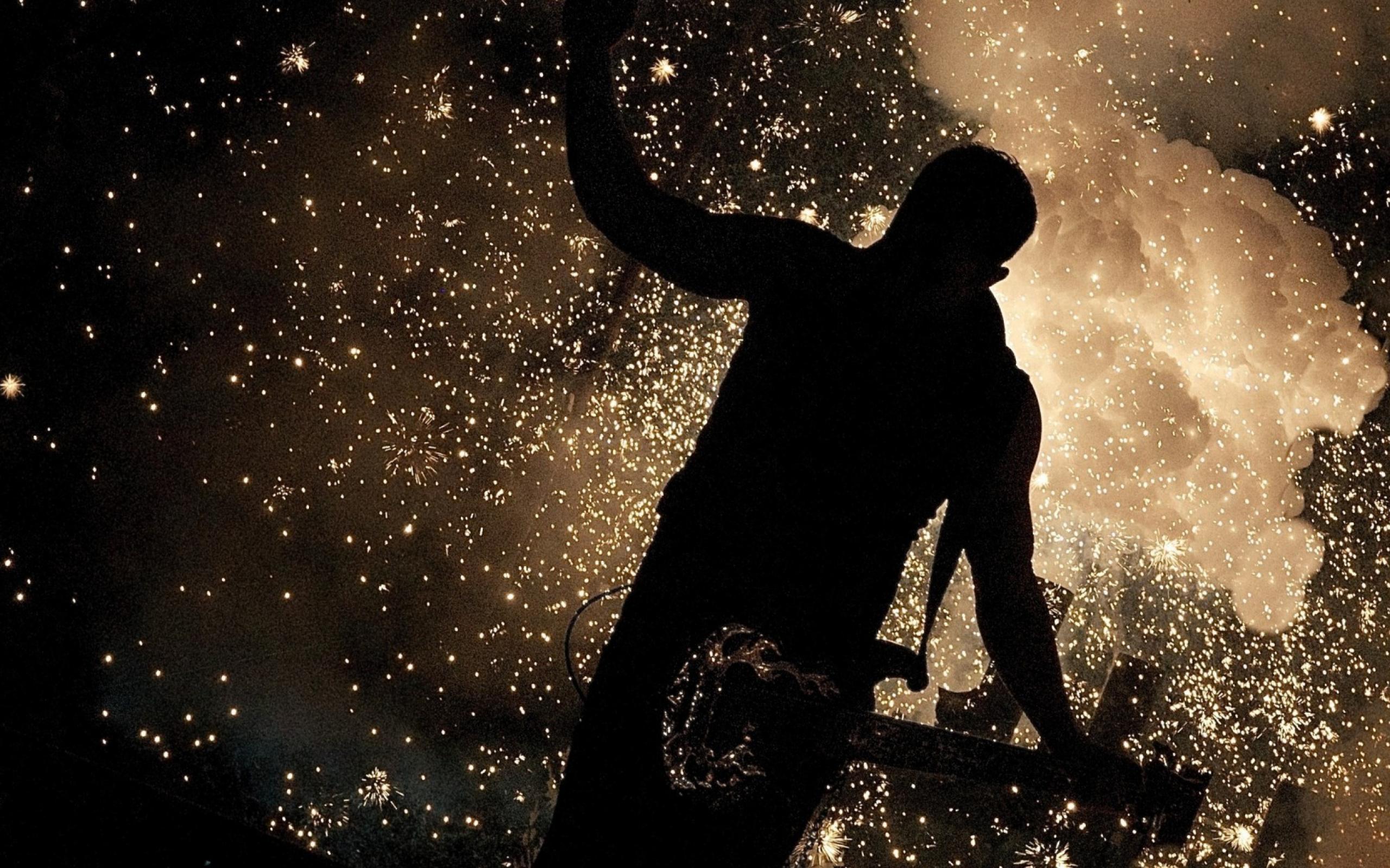 Обои Гитарист на фоне искр