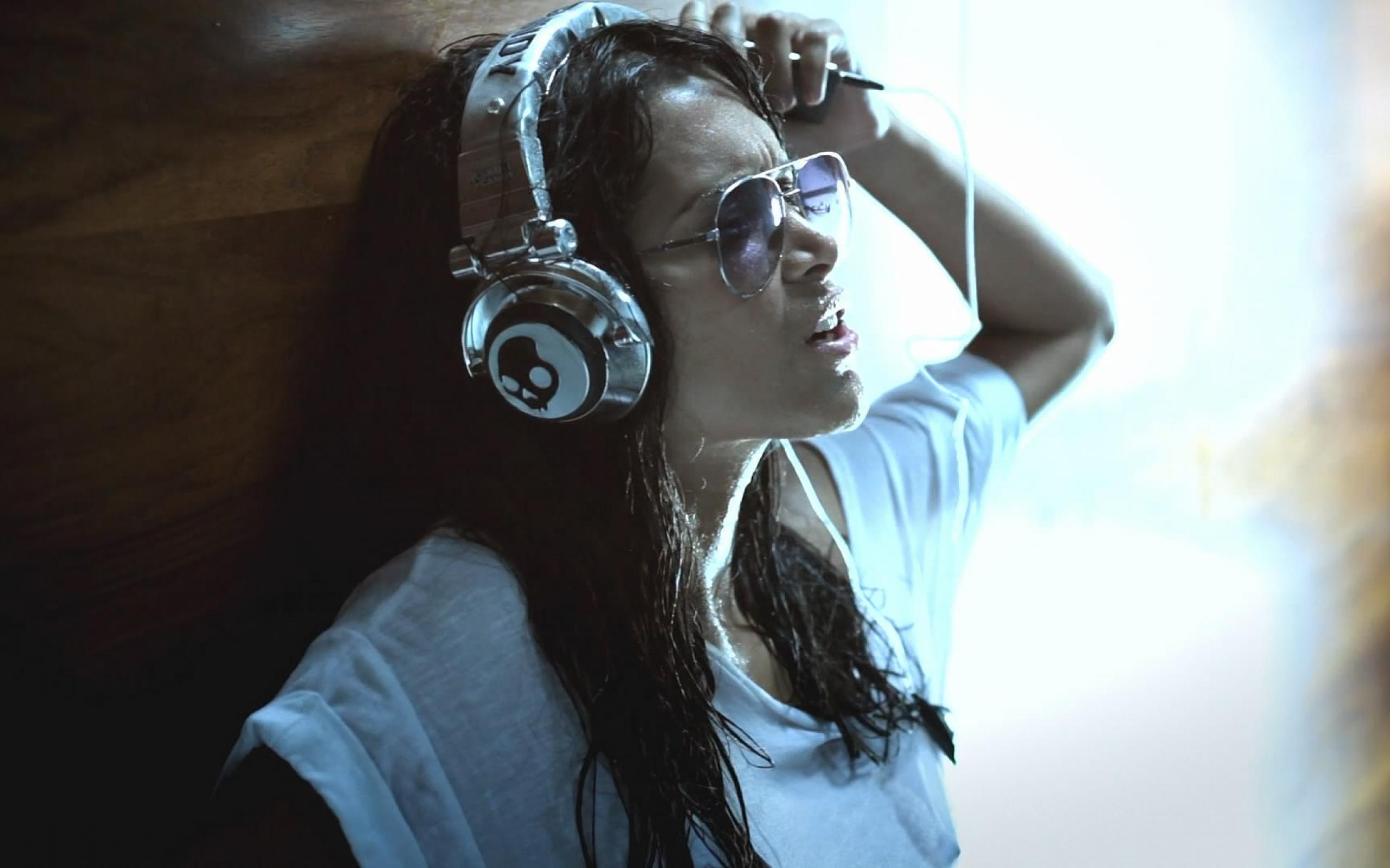Обои Девушка слушает музыку