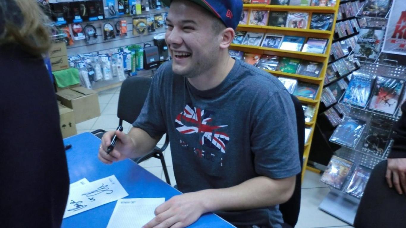 Обои Макс Корж дает автограф