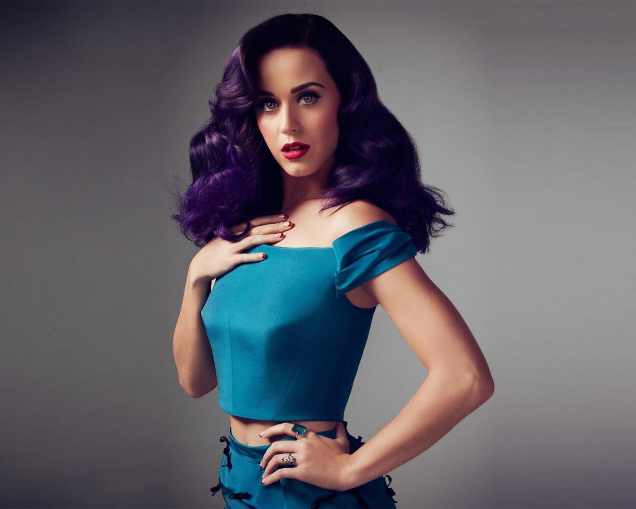 Обои Певица Кэти Перри в синем платье