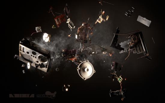 Обои взрыв, осколки, музыка