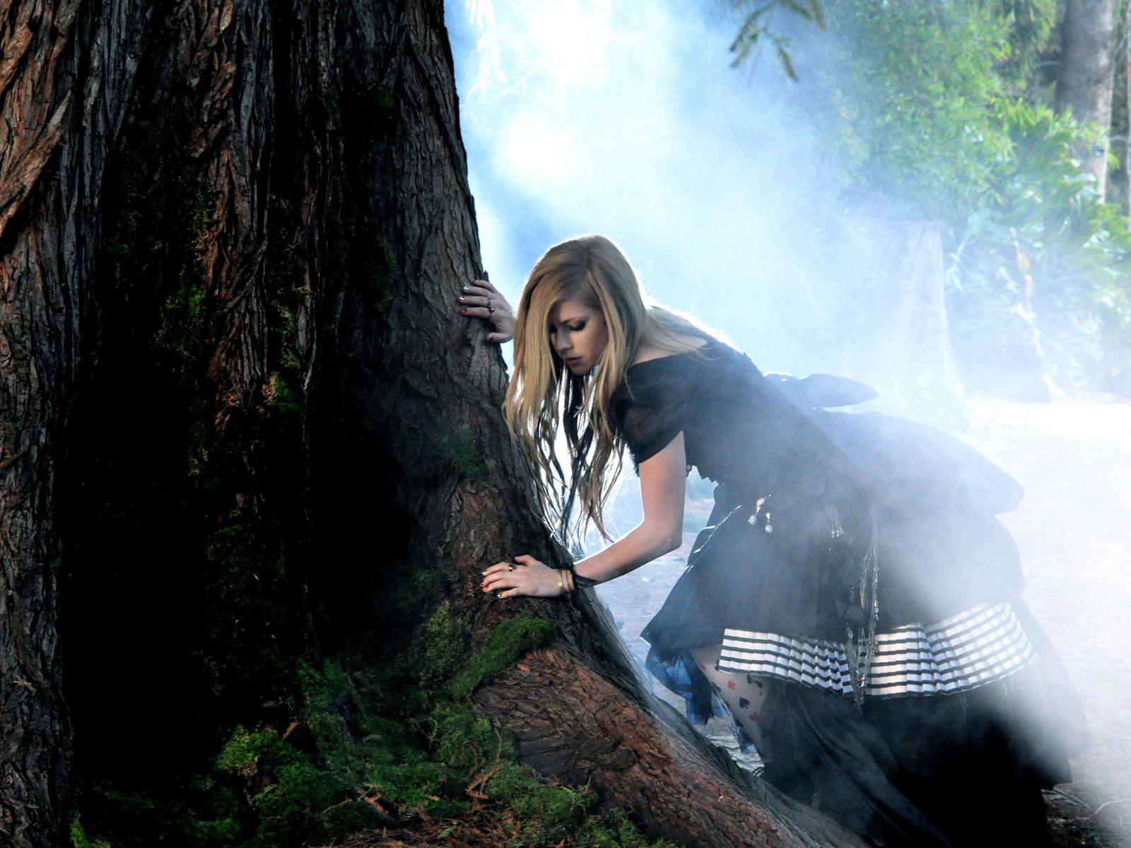 Обои Аврил Лавин в лесу