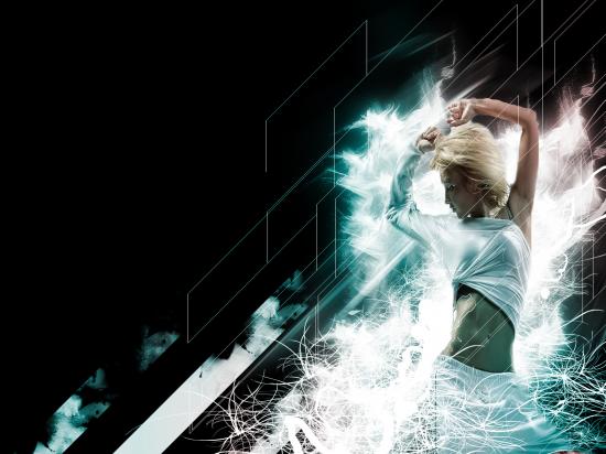 Обои Японка танцует среди волн света
