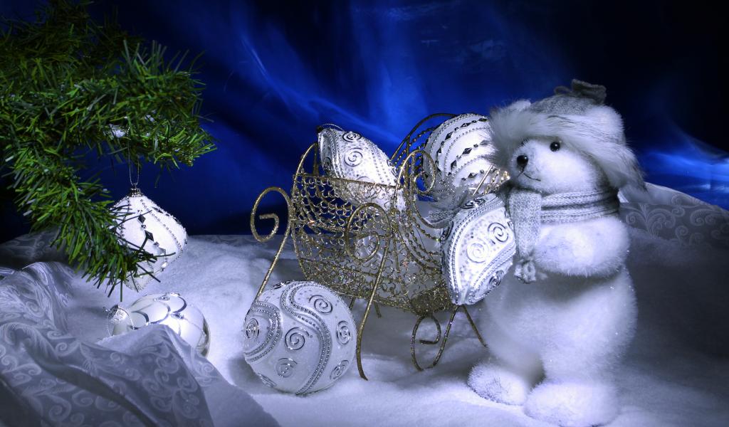 Обои Снег, Новогодняя елка, Макро, Ёлочные игрушки