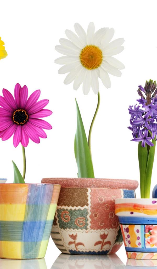 Обои Распустившиеся цветы в горшках на 8 марта