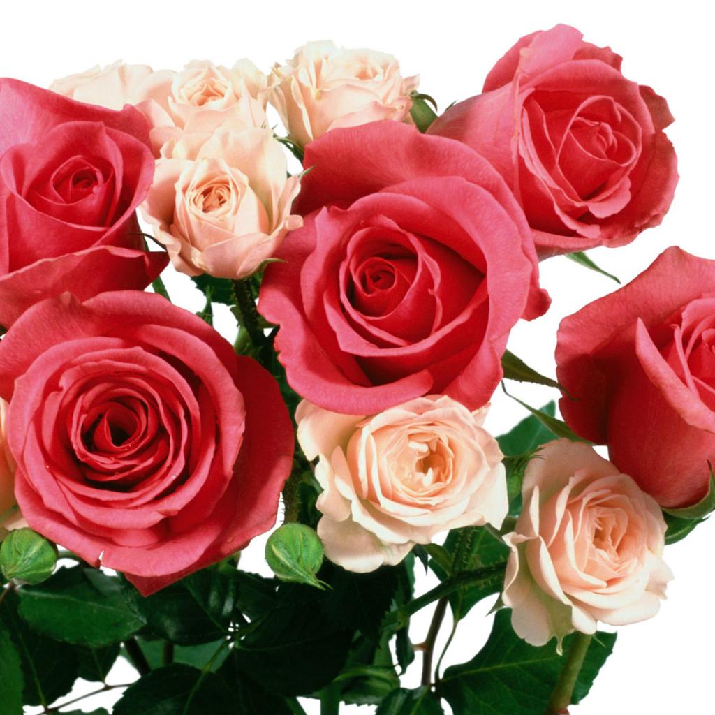 Обои Букет из алых и бежевых роз на 8 марта