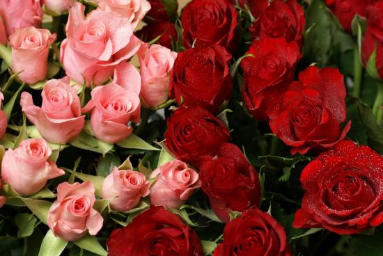 Обои Красные розы на 8 марта в букете с розовыми