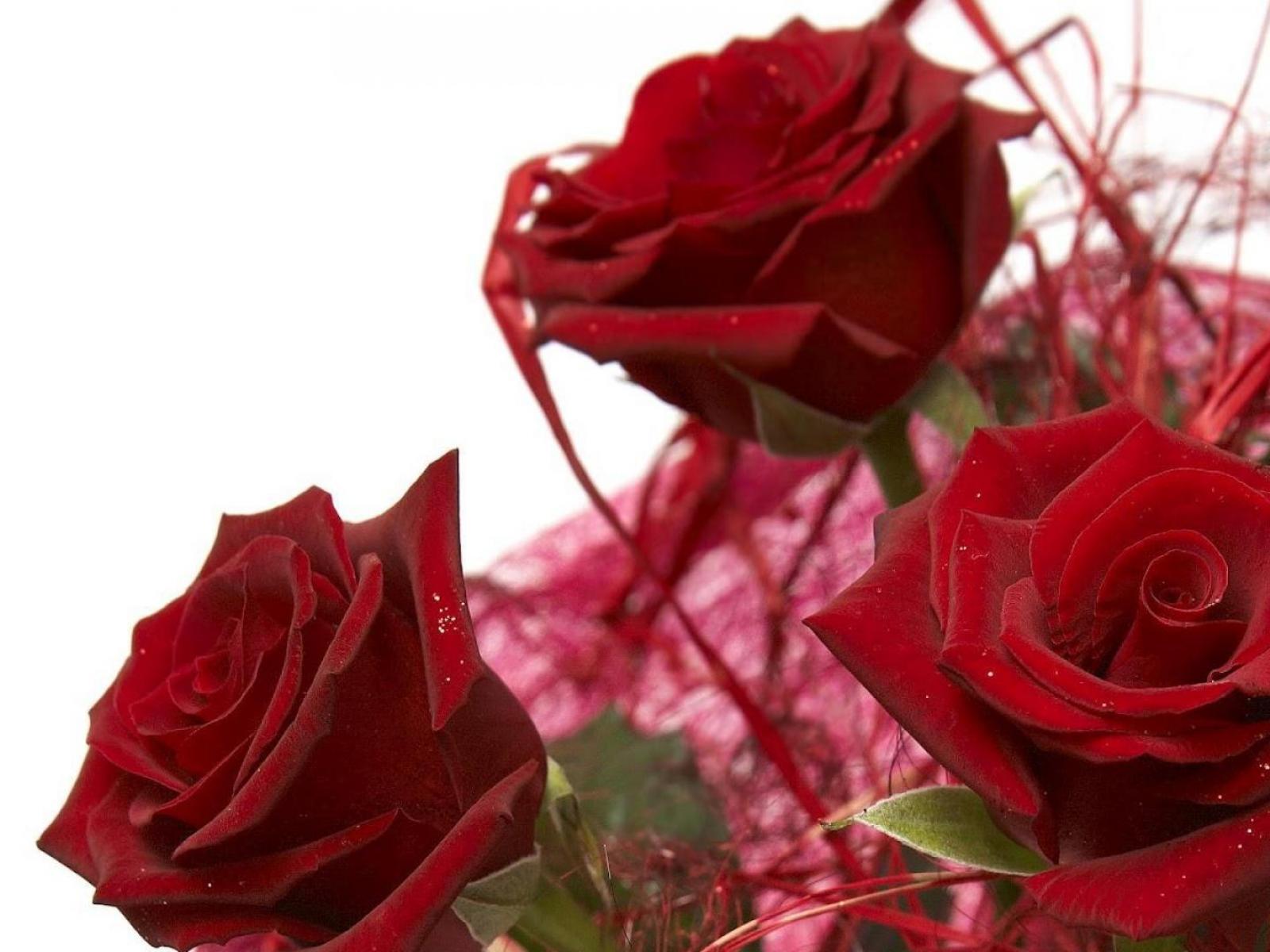 Обои Украшенные красные розы в подарок на восьмое марта