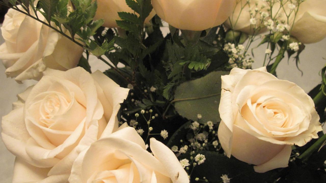 Обои Белые розы в букете женщинам на восьмое марта