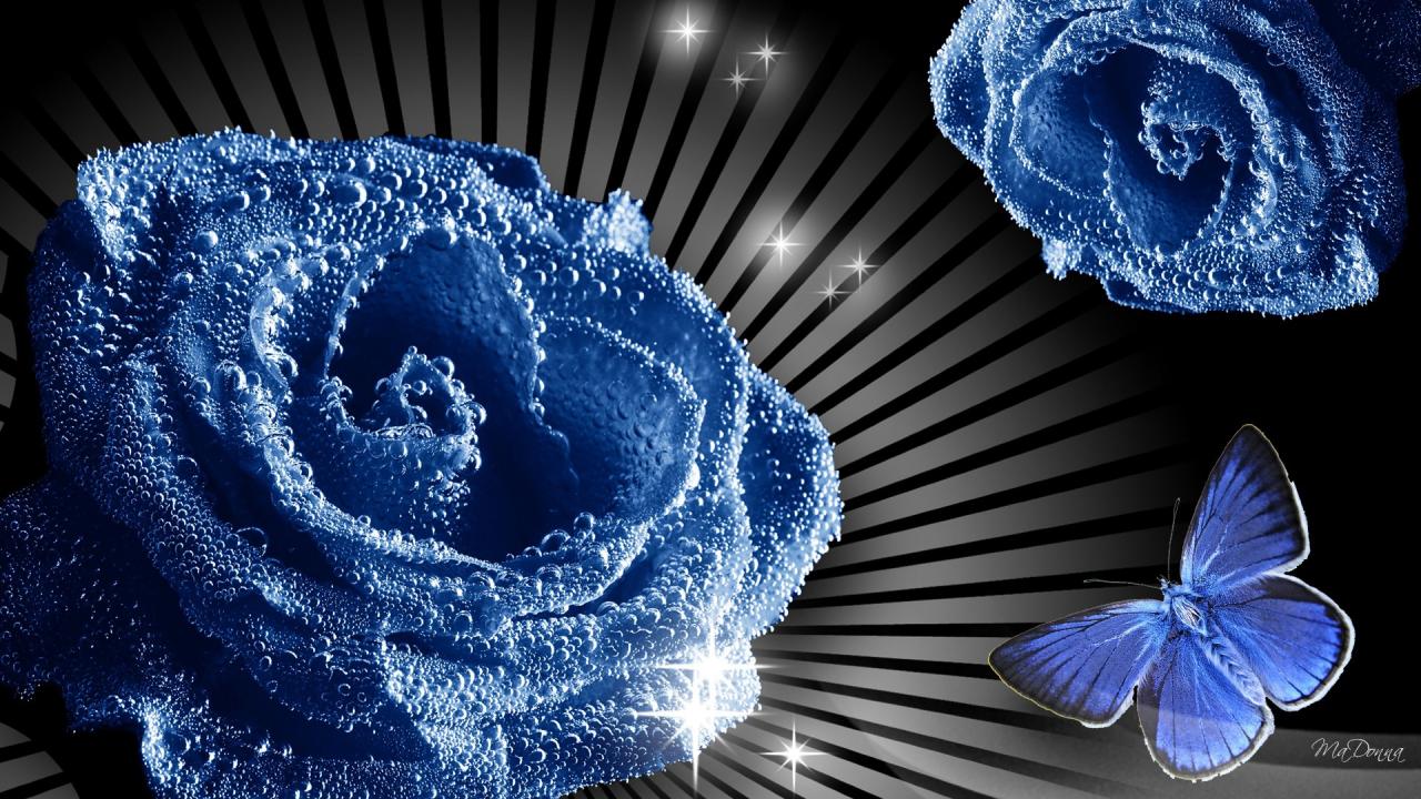 Обои Синие роза и бабочка, картинка на восьмое марта