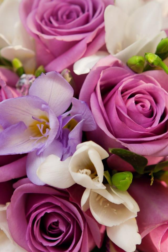 Обои Фиолетовые розы в букете для женщин на восьмое марта