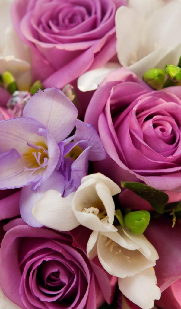 Обои Фиолетовые розы в букете для женщин на восьмое марта