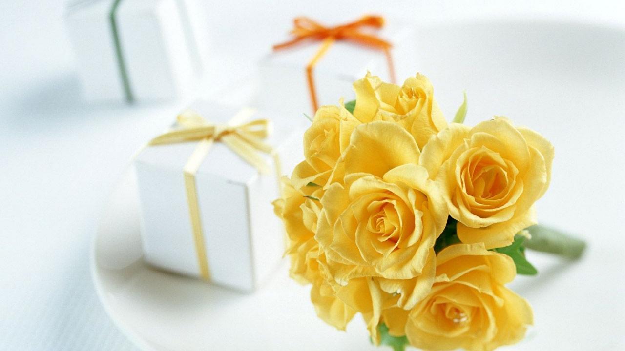 Обои Жёлтые розы и подарки на восьмое марта
