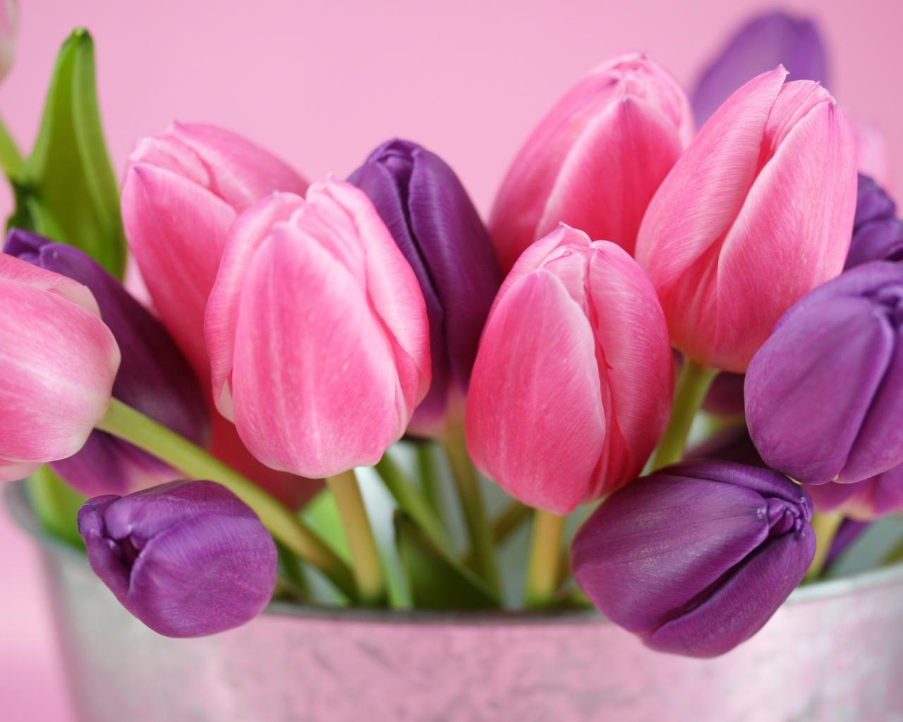 » Обои Розовый фон, Букет тюльпанов