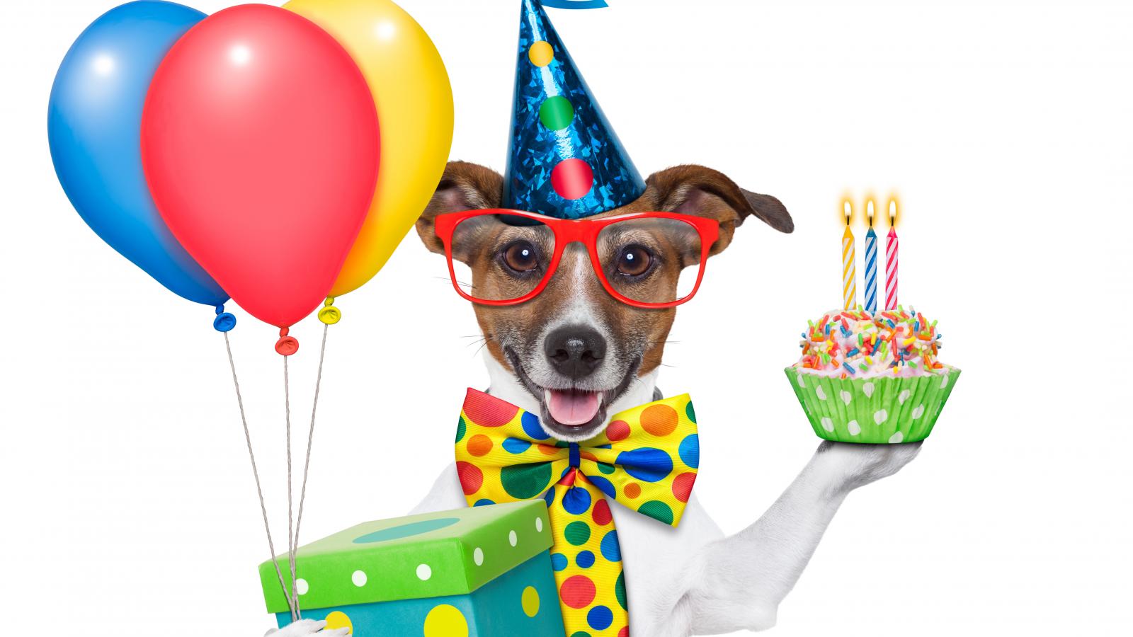 Обои Весёлая собака на день рождения