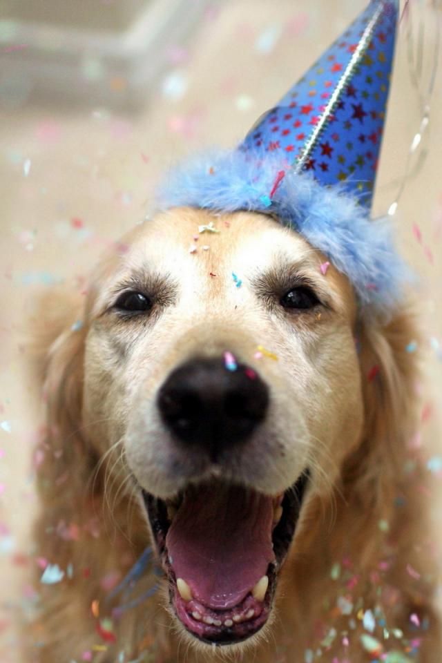 Обои Счастливый пёс на день рождения