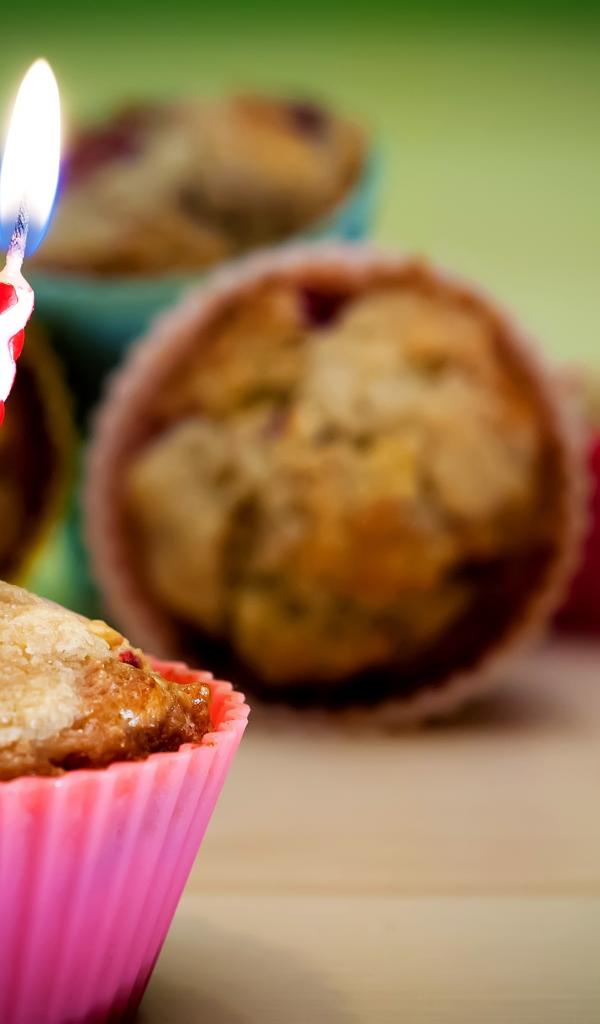 Обои Кекс со свечой на день рождения