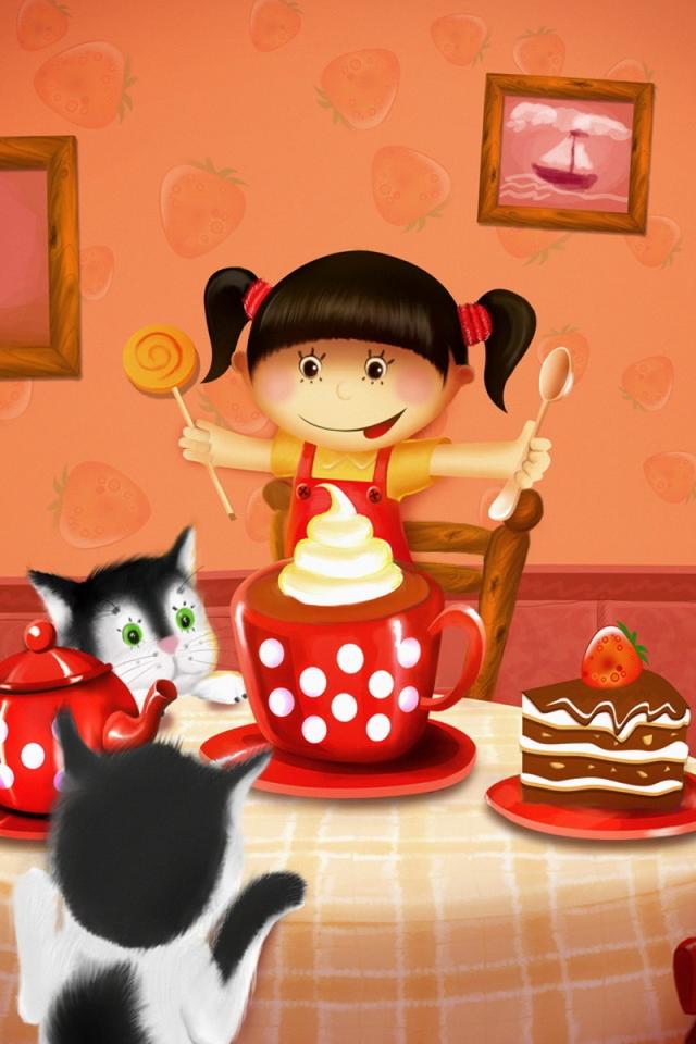 Обои Кот с тарелкой за столом