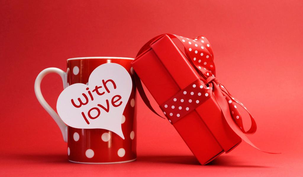 Обои Чашка с подарком на День Святого Валентина 14 февраля