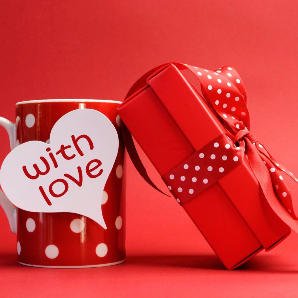 Обои Чашка с подарком на День Святого Валентина 14 февраля