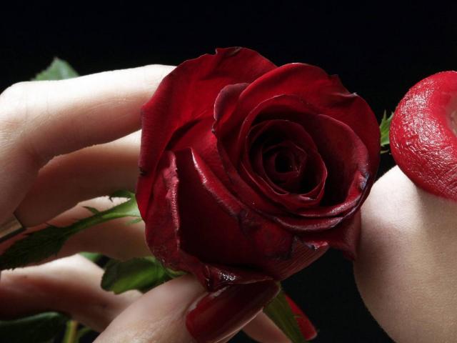 Обои Роза у губ на День Святого Валентина 14 февраля