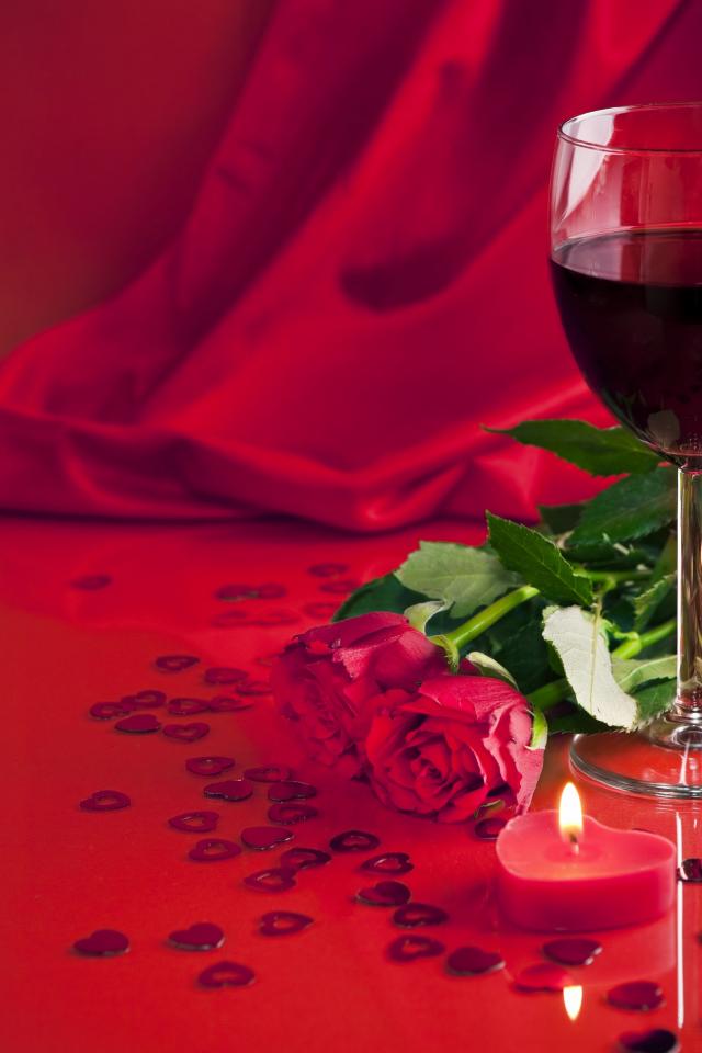 Обои Розы и вино на День Святого Валентина