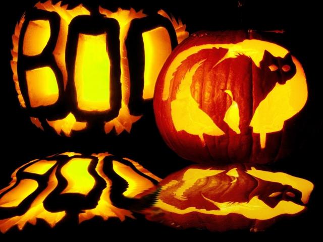 Обои Хэллоуин испуганный кот