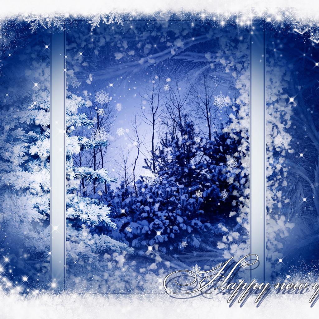 Обои Новогодняя ночь в заснеженном лесу