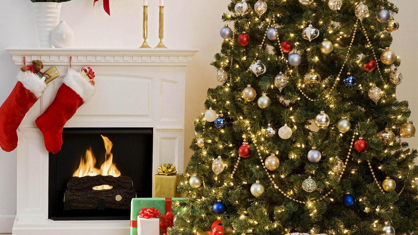 Обои Елка у камина на Рождество