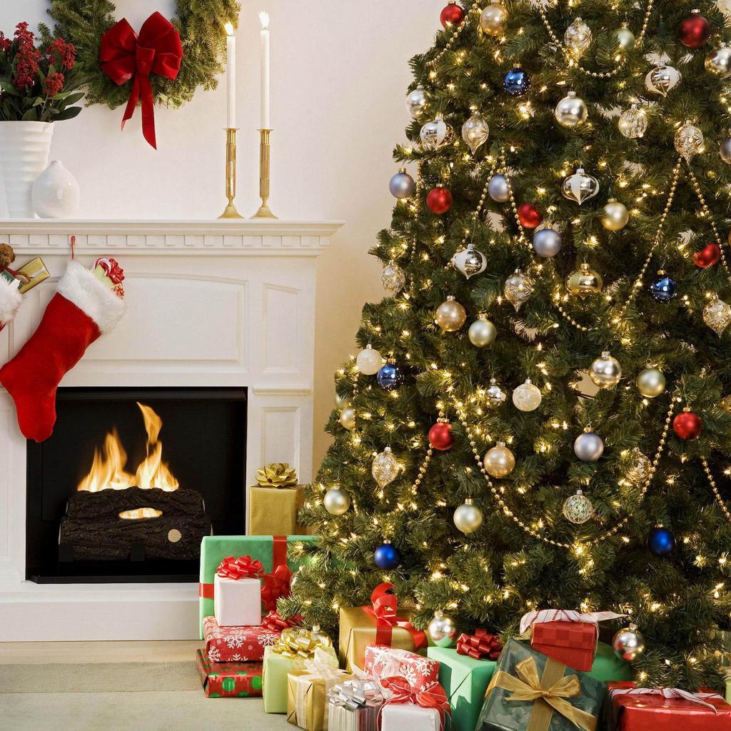Обои Елка у камина на Рождество