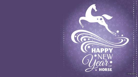 Обои Новый Год 2014 красивый фиолетовый фон с лошадкой