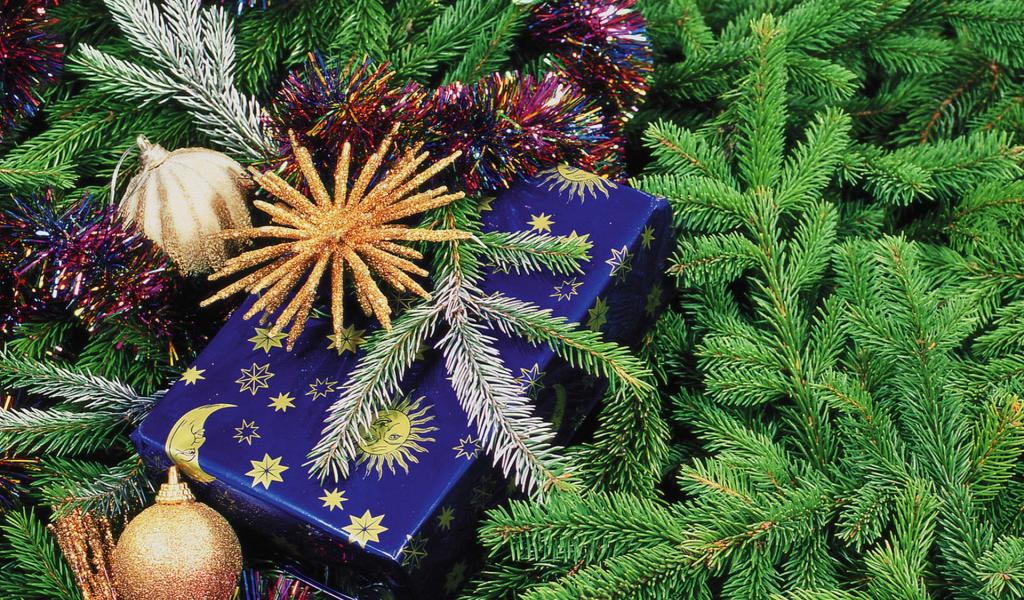 Обои Подарок у елки на Новый год