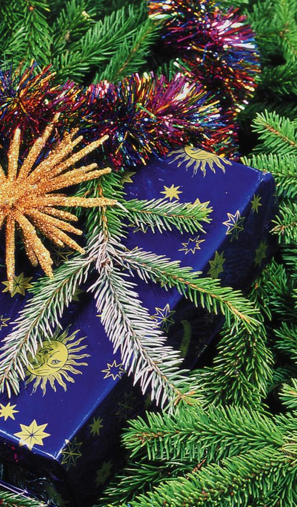 Обои Подарок у елки на Новый год