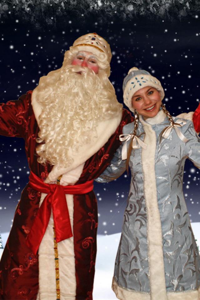 Обои Hовогодние дед мороз и снегурочка