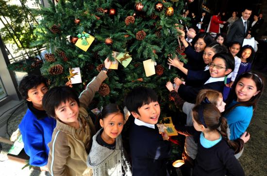 Обои Дети у новогодней елки 2014