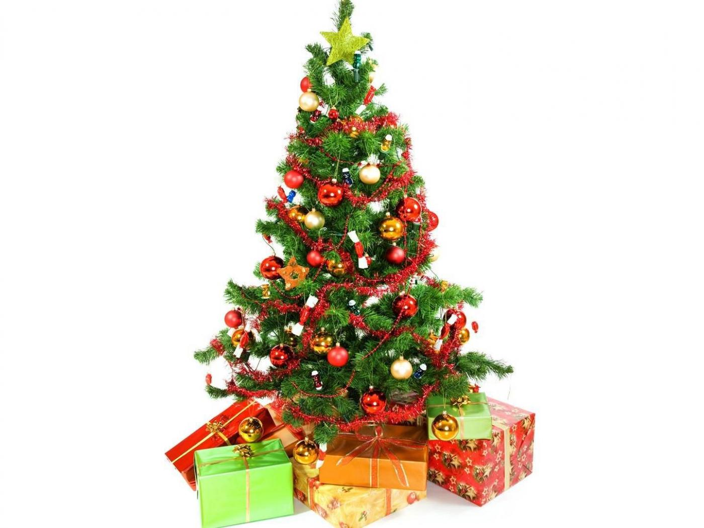 Обои Новогодняя елка в ярком фоне