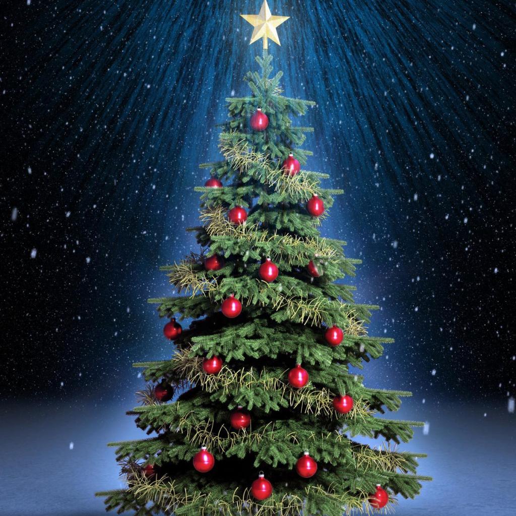 Обои Новогодняя елка под светом звезды