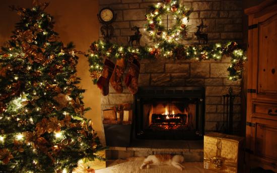 Обои Красивые украшения новогодней елки и дома