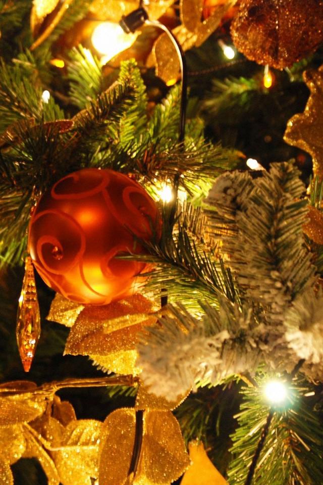 Обои расивая Новогодняя елка с небольшой красный игрушкой