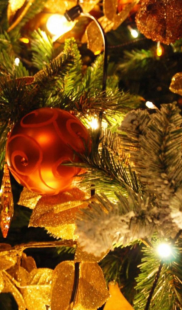 Обои расивая Новогодняя елка с небольшой красный игрушкой
