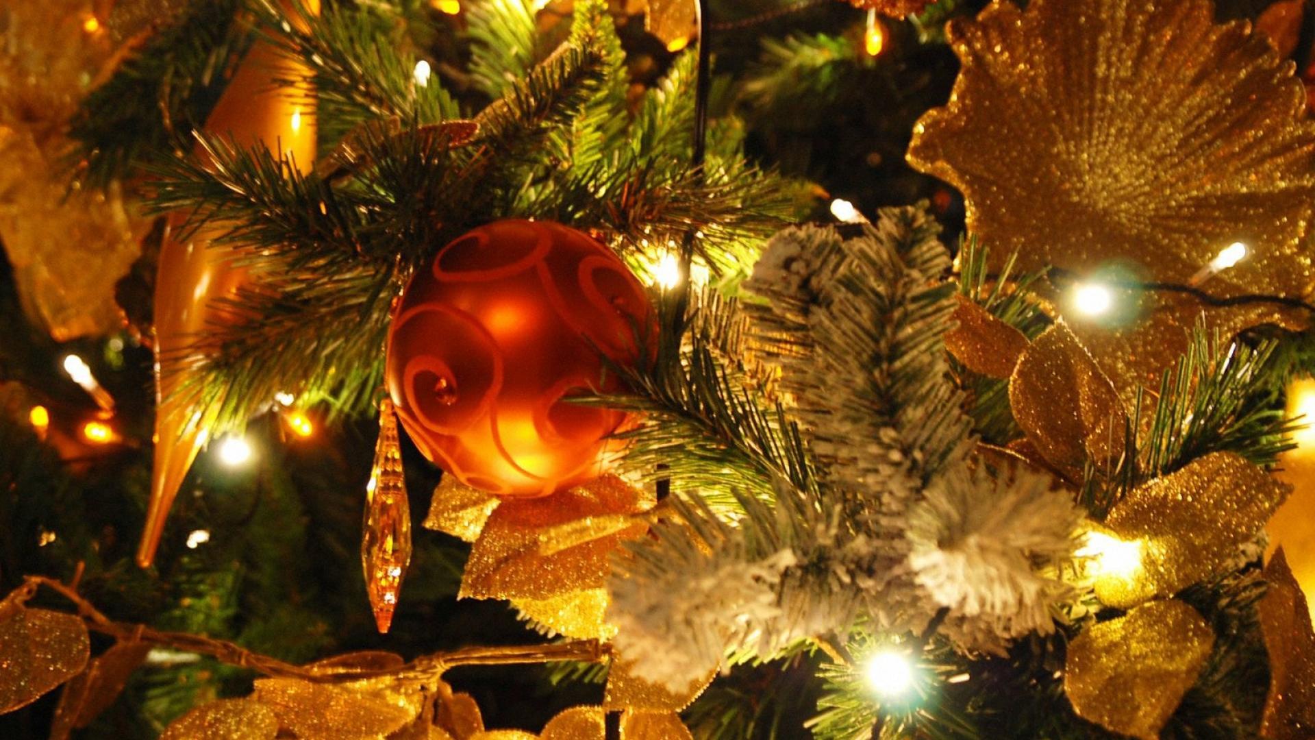 Обои расивая Новогодняя елка с небольшой красный игрушкой