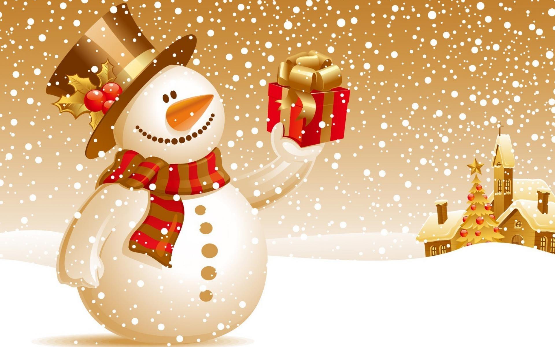 Обои Снеговик с подарком