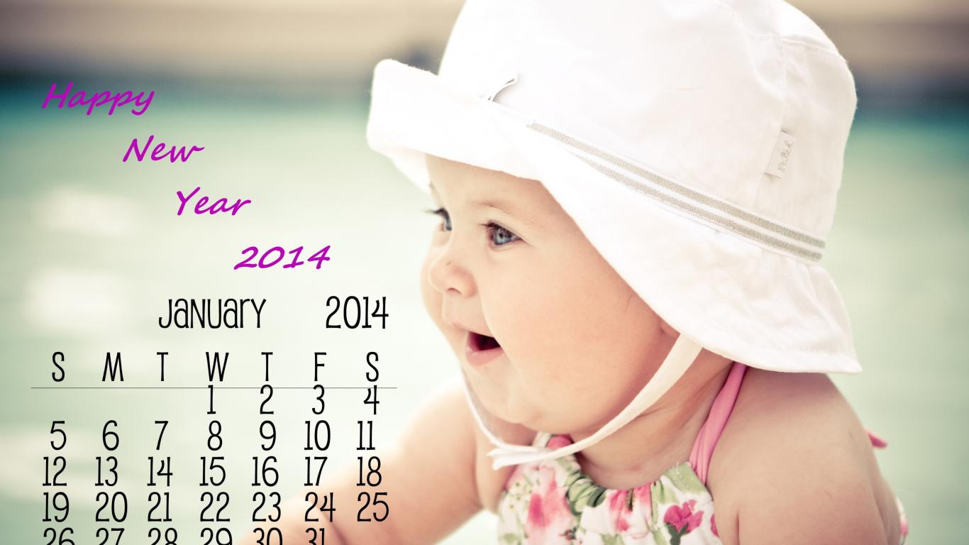 Обои Счастливого нового года 2014, календарь и ребёнок