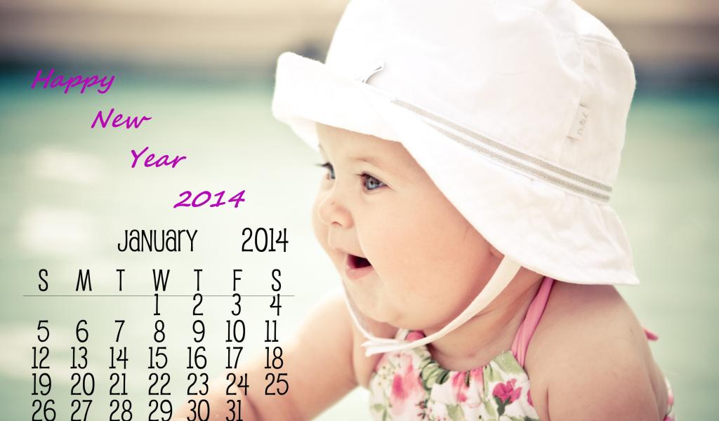 Обои Счастливого нового года 2014, календарь и ребёнок